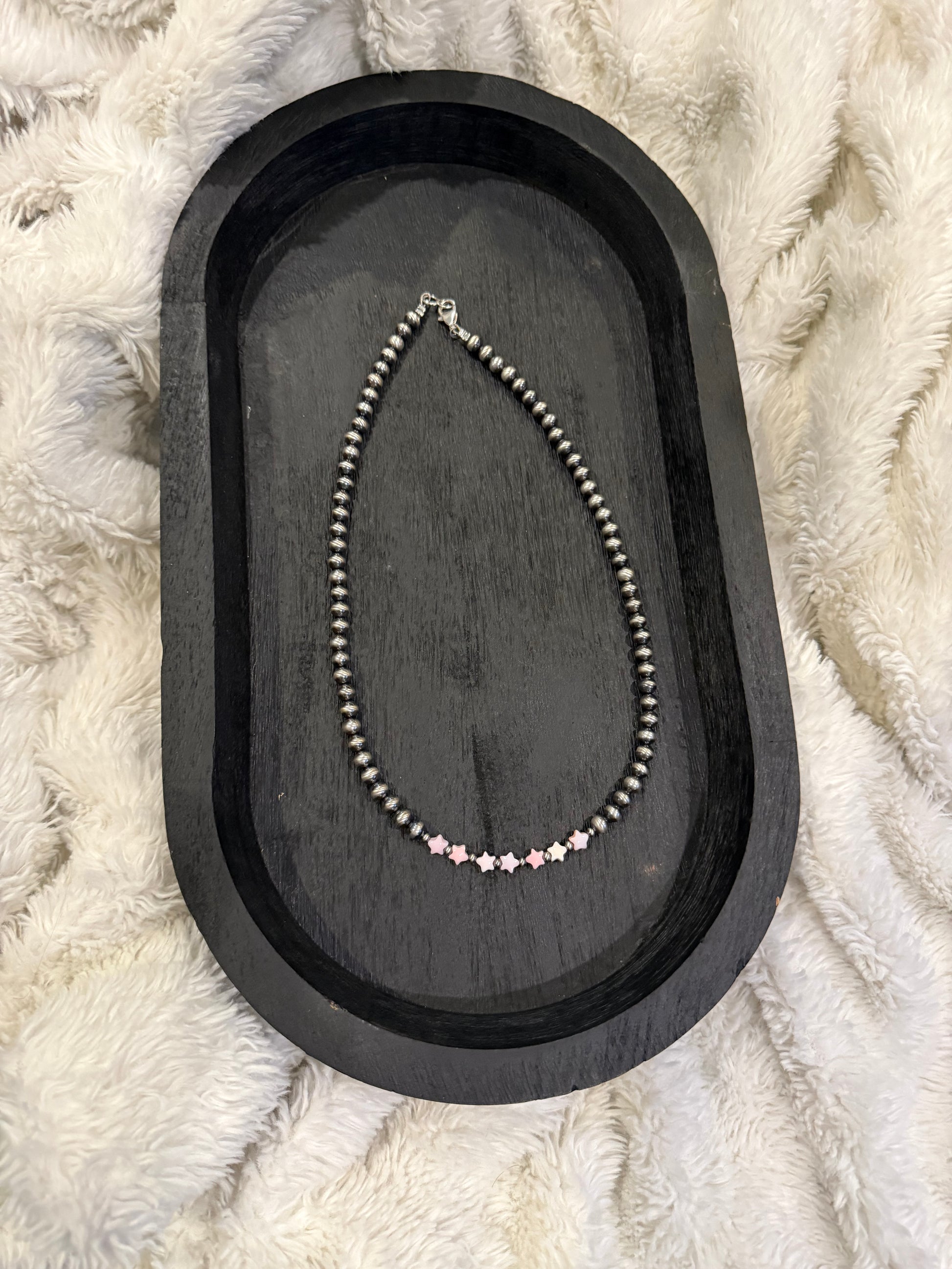19 1/2 inch 3mm & 6mm pearls with pink conch stars