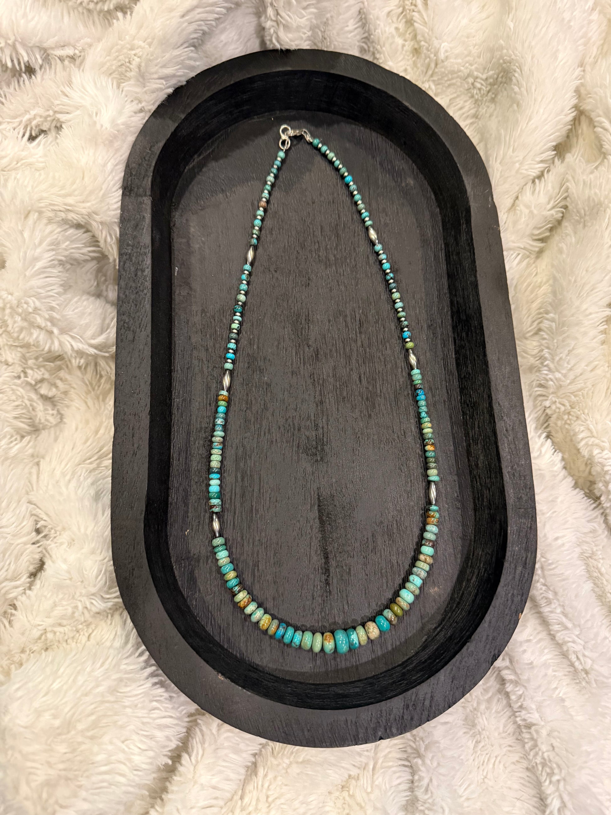 25 inch 3mm round pearls & 4mm torpedos with turquoise