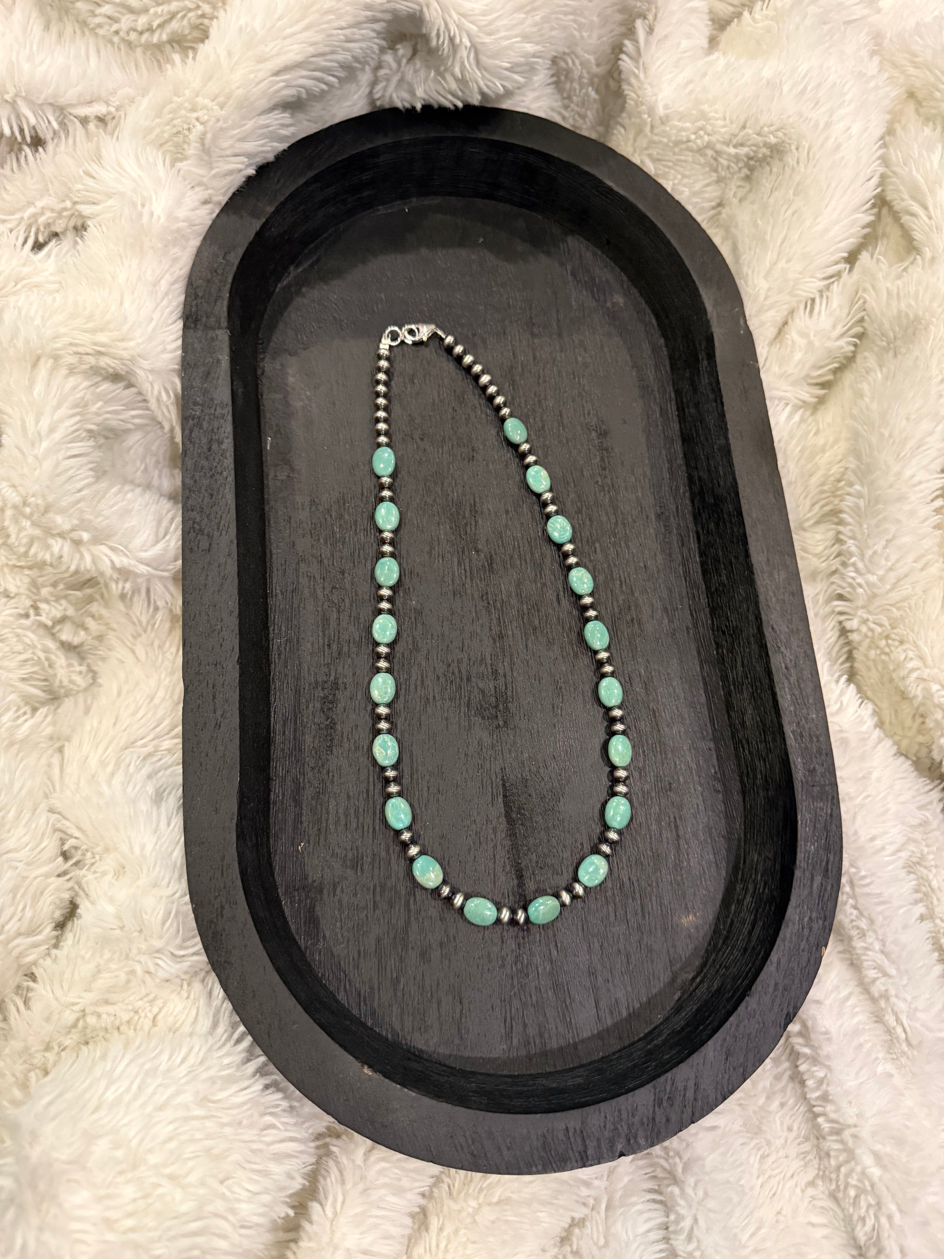 18 1/2 inch 5mm pearls with turquoise oval beads