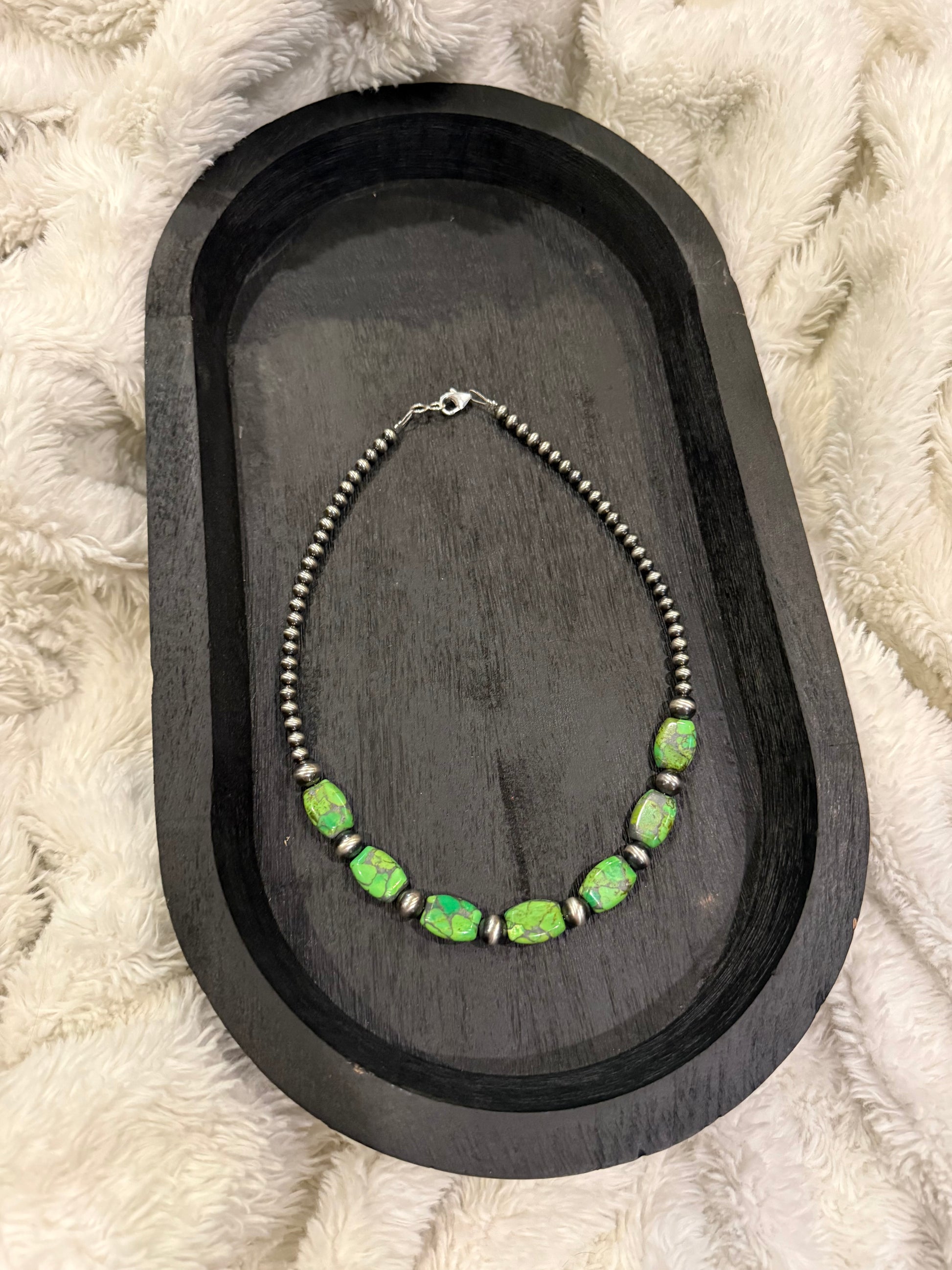 18 inch 5mm & 8mm pearls with green mohave and zinc mix