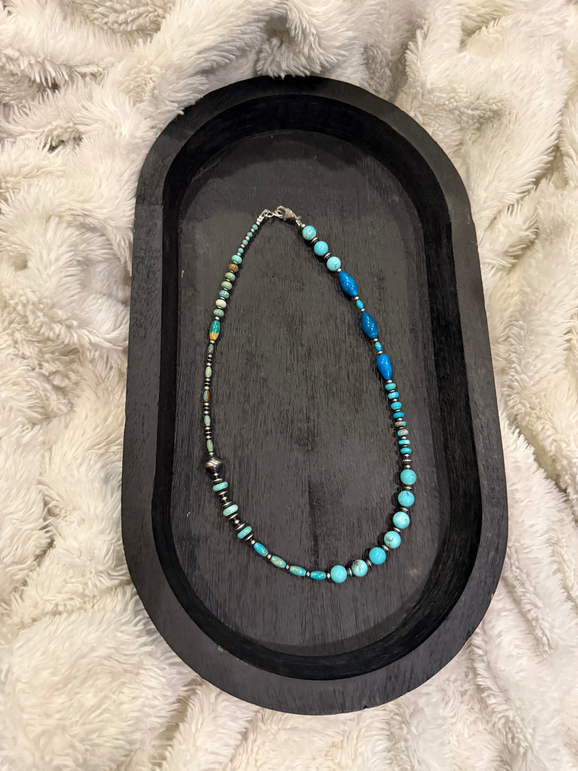 20 inch 3mm & 10mm round pearls 3mm, 4mm, & 5mm saucers with turquoise