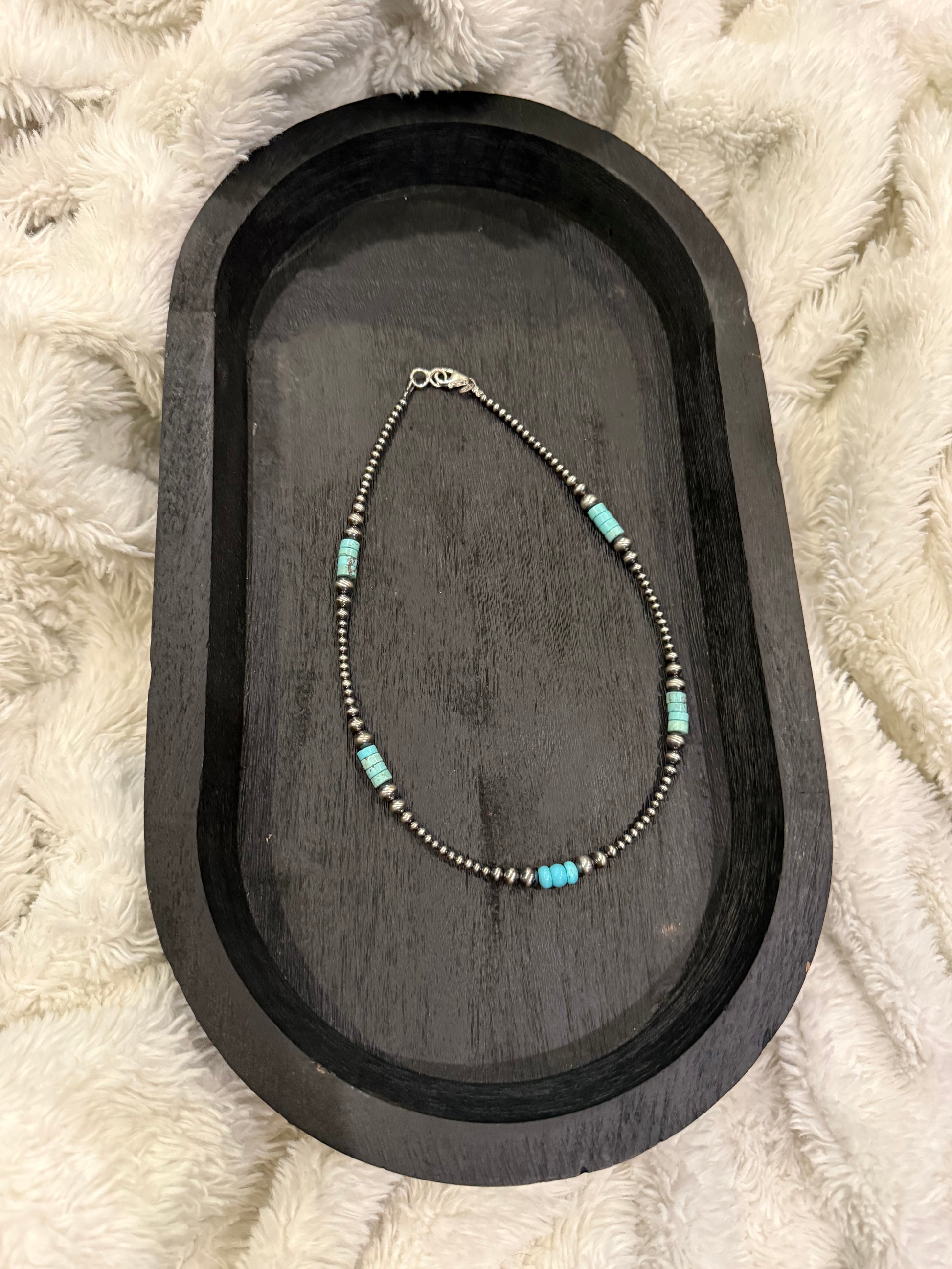17 inch 3mm, 4mm, 5mm, & 6mm pearls with turquoise