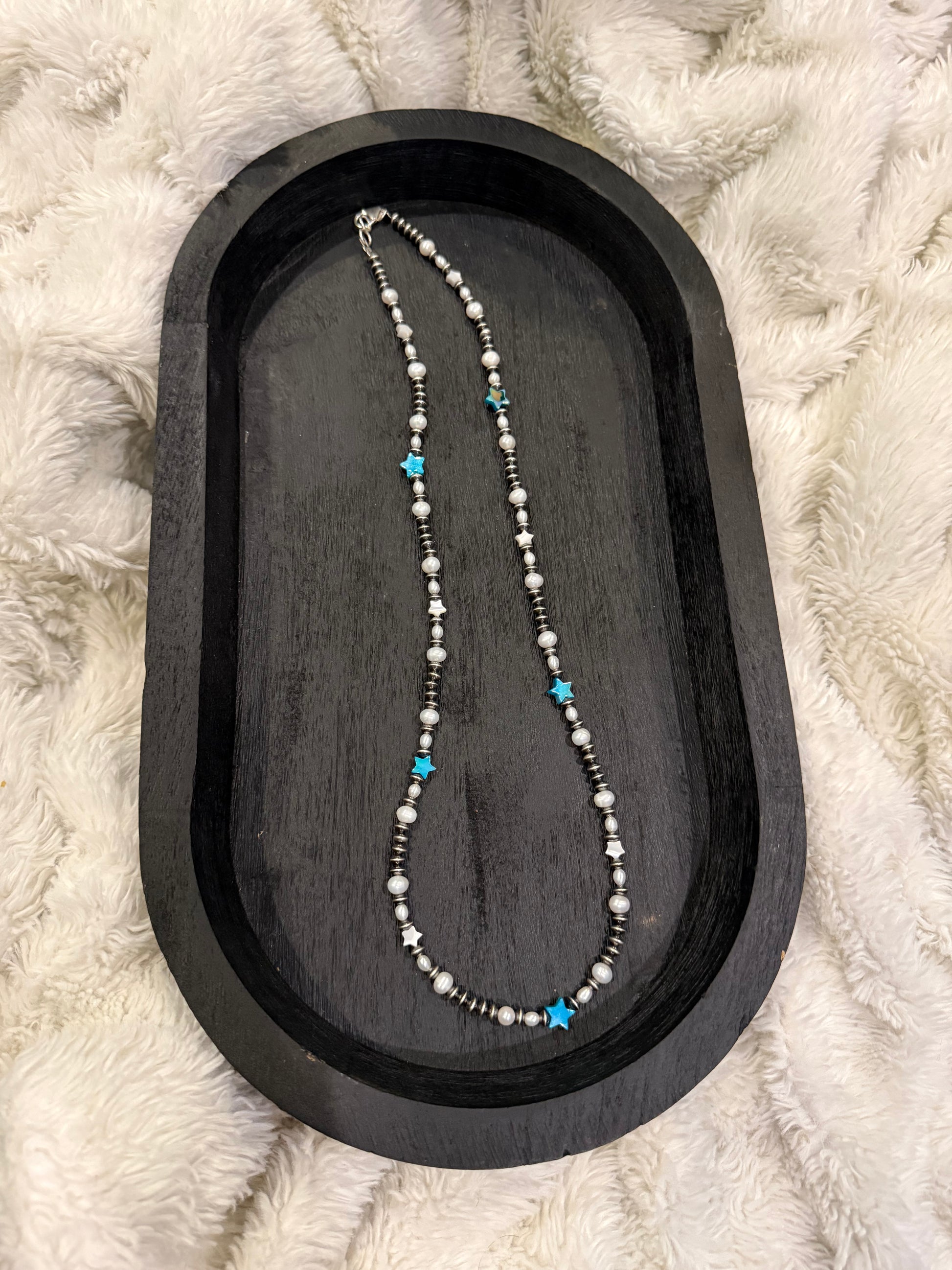25 inch 4mm saucers with fresh water pearls and mother of pearl stars
