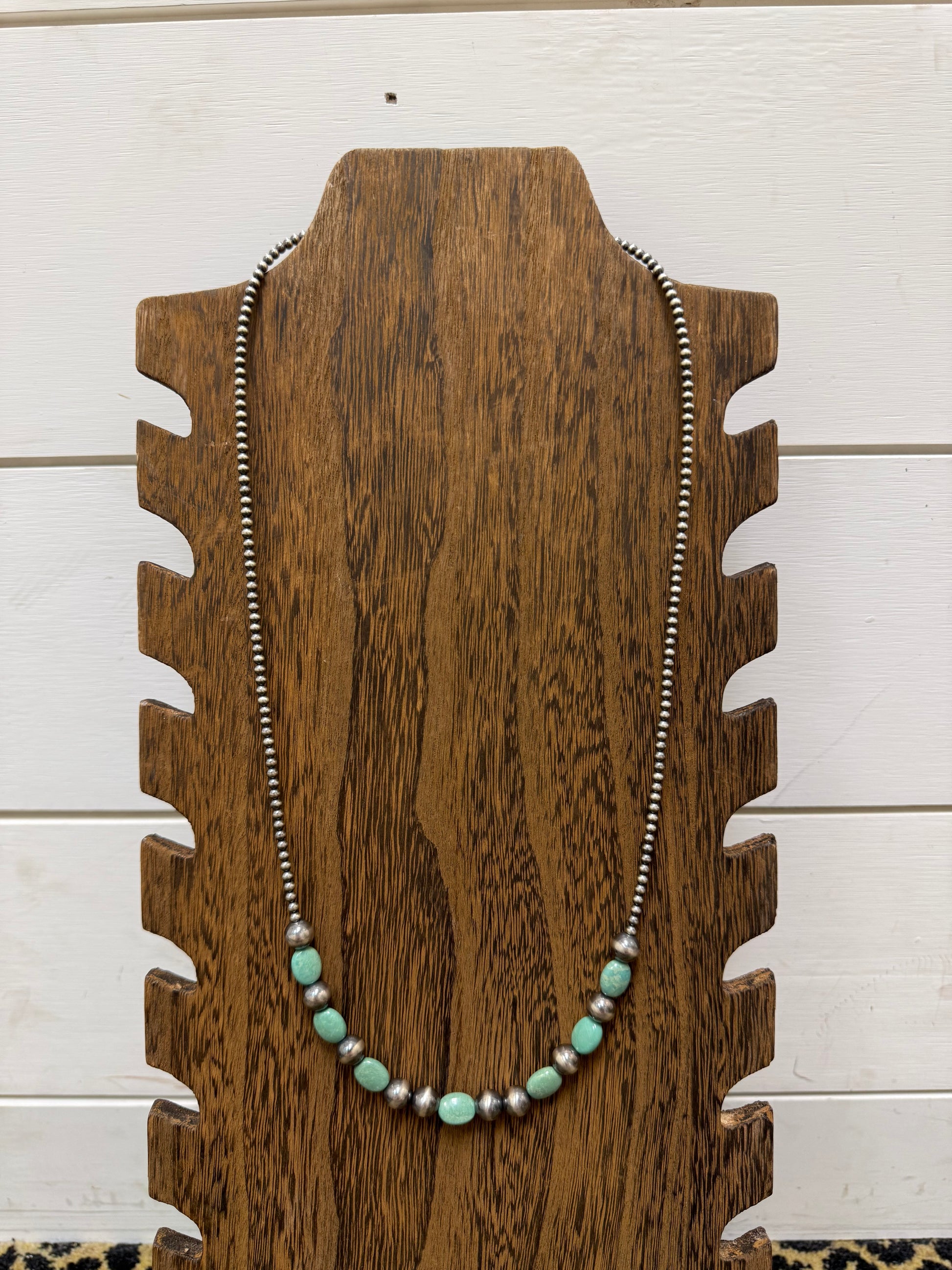 25 inch 3mm pearls & 8mm pearls with turquoise oval beads
