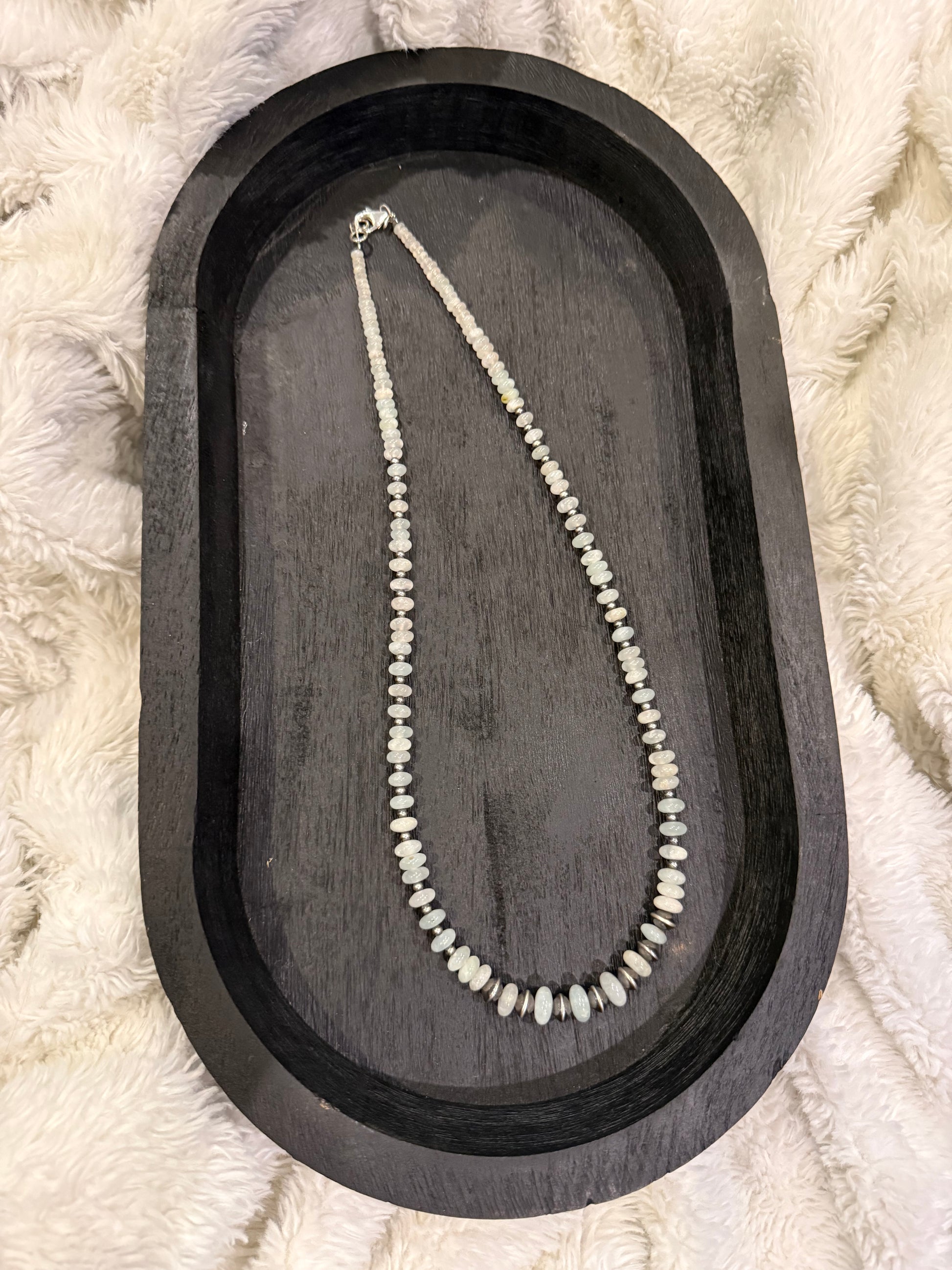23 inch 3mm round pearls & 8mm saucers with prehnite