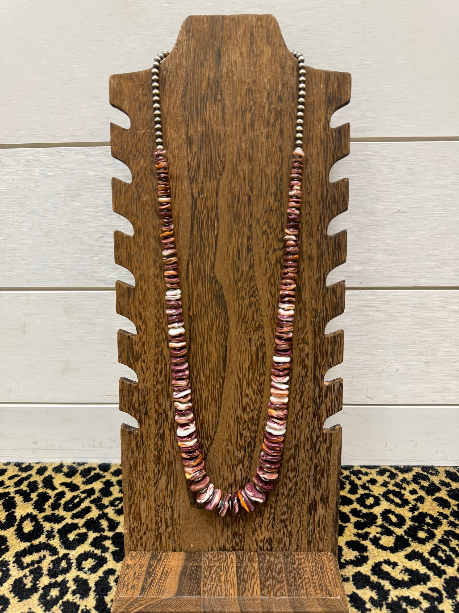 32 inch 5mm pearls & 3mm & 8mm saucers with purple spiny oyster