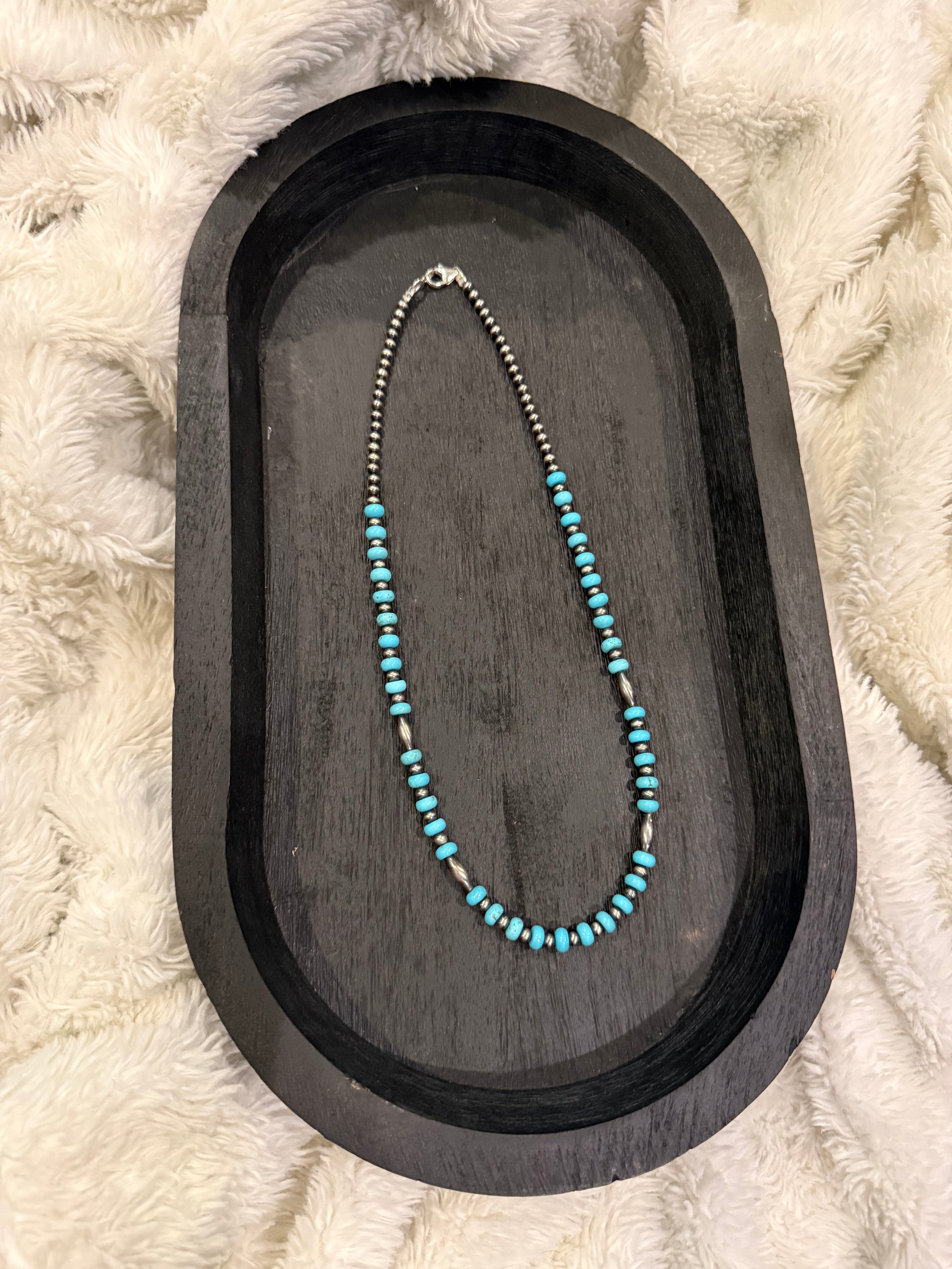 20 inch 4mm pearls & 4mm torpedos with turquoise